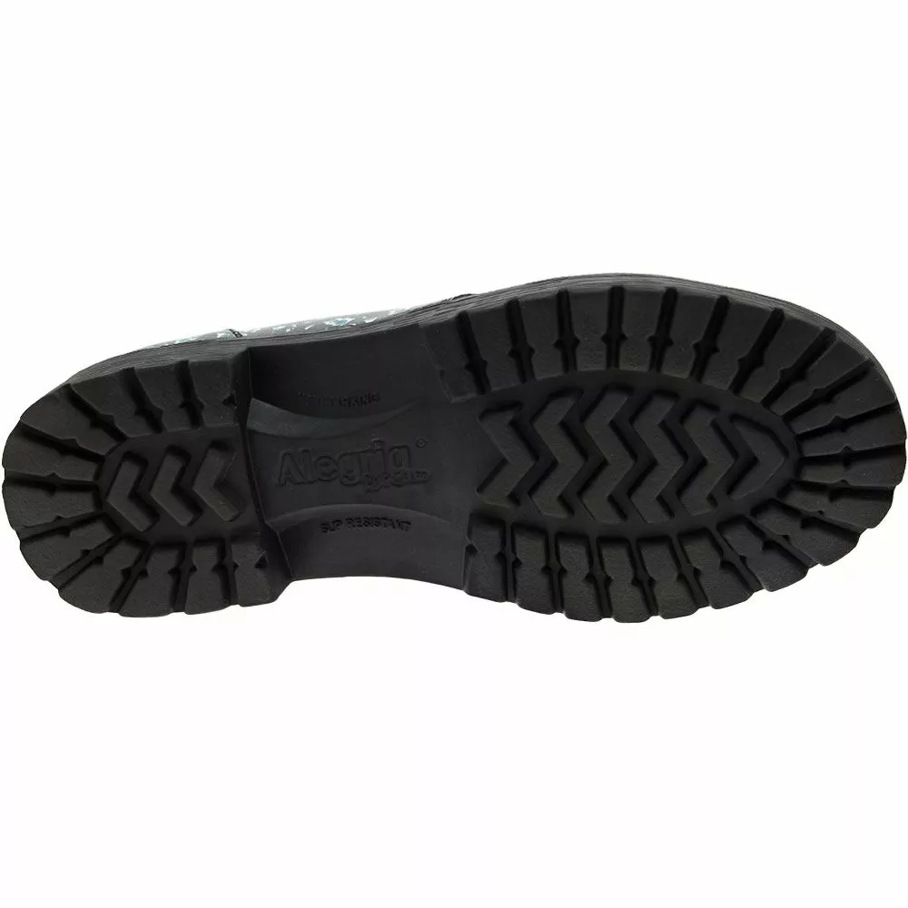Enjoy style and comfort as you stroll around in this pair of Alegria Reece womens slip on casual shoes. Adjustable laces stay put as you walk thanks to fashionable metal décor holding them in place. Treaded slip-resistant Luxe Lug outsoles provide the reliable traction you need to safely cross wet and slippery surfaces. For added support, removable memory foam insoles cradle your feet to reduce stress on joints and muscles while helping to improve your posture.
