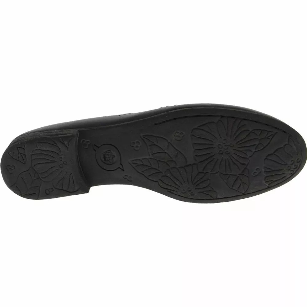 Born Graham Slip on Women’s Casual Shoes. The mule has made a comeback in recent years, and it’s no wonder why. They’re easy to wear, comfortable, and have a timelessly elegant look. These mules are made from full-grain leather in black for a polished, chic vibe. Covering the front of the foot but leaving the heel exposed, these loafers are easy to slip on, and the cushioned insole offers exceptional comfort. A durable rubber outsole with a 1-inch heel provides traction and just a bit of lift.